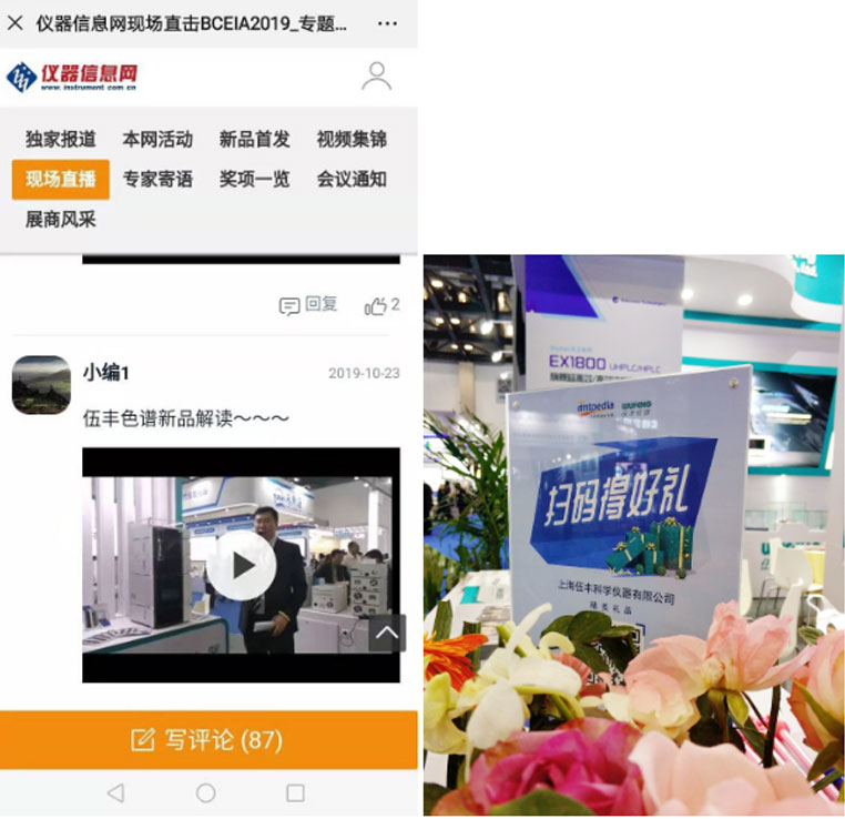 本次展會,伍豐參與了儀器信息網的“現場直擊 BCEIA2019”的新品路線活動,接受專訪,并實時上傳直播內容。還與分析測試百科網攜手舉辦了“掃碼贏好禮”的互動活動。