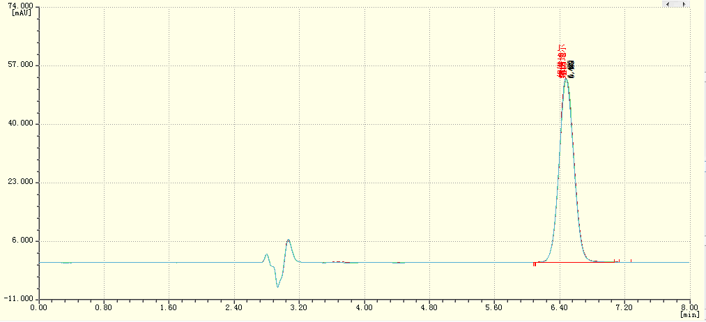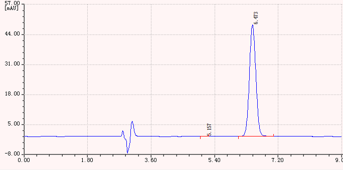 將上述5.15 mg/L ,13.40 mg/L兩種濃度的溶液連續測定5次,以峰面積考察其精密度,RSD分別為0.85%,0.38%。均小于2%。