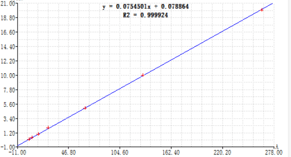 參照該標準,使用伍豐LC-100高效液相色譜儀對飲用水中的甲萘威進行了檢測。分別以0.2ug/ml,0.5ug/ml,1.0ug/ml,2.0ug/ml,5.0ug/ml,10.0ug/ml和20ug/ml七個濃度進行測試,從結果可見:線性相關系數(shù)等于0.9999,相對標準偏差<0.5%,且符合標準中檢測限定要求,適合于地表水及飲用水中甲萘威的檢測,。